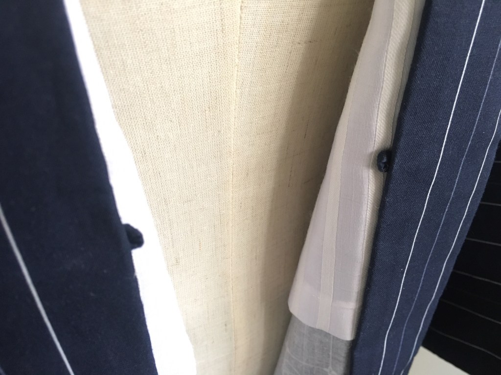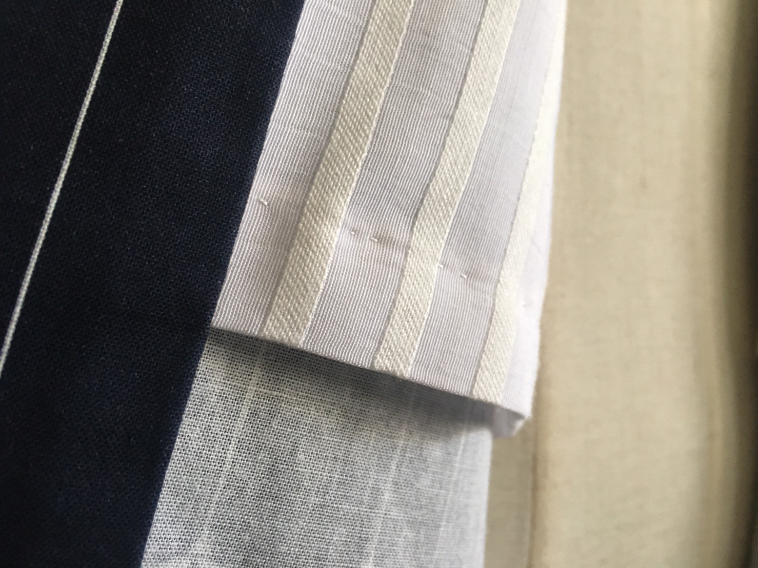 直條紋的布料製作起來也很順手,有沒有哪裡歪掉一看就知道,可以很快地調整。