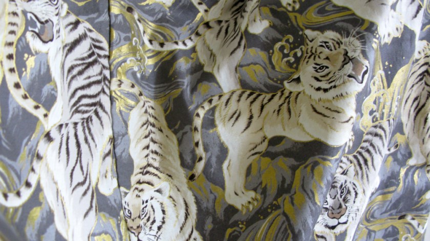經過很快速地討論後,決定的製作兩種製作方式:買新布料從頭製作,或是找本身就有老虎圖案的和服來改製。買布料是最快且最容易的方式,畢竟我也還沒看過有和服上面有老虎花紋的,有的話或許非常珍稀(貴)。