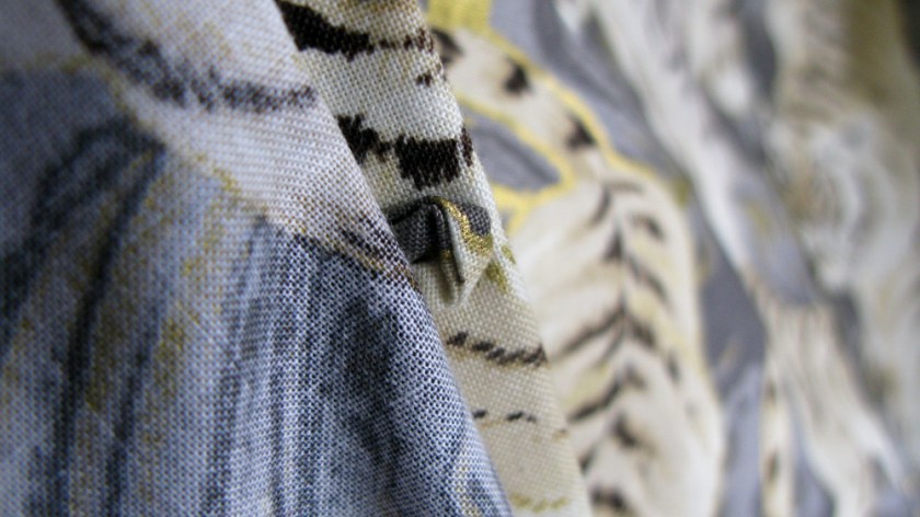 和預想的一樣,經過斷斷續續一個多月的尋找,只有找到一件有單隻老虎圖案的襦袢,沒有得選其他圖案,布料到有幾款可以選擇。確定要使用新布料製作後,先讓同學幫我選不同店家的布料,並排名次,第一家不能買的話就換第二家的布料。因為日本樂天的店家不一定每家都可以寄海外,也不一定會在購物頁面上標明是否有海外寄送服務,只能寫信問能不能寄來台灣。選定的三家中還好有一家可以寄來,實在感謝不然我快不知道要去哪找老虎了😂。